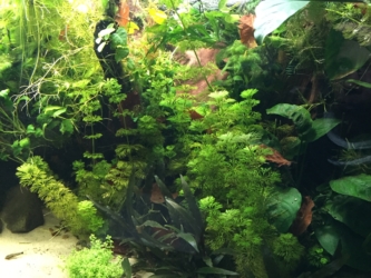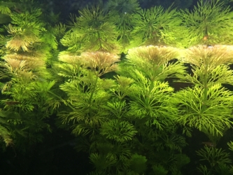 Bei ausreichendem Licht sind die Blattabstände schön dicht, ist es zu dunkel bilden sich lange Stängel zwischen den einzelnen Blattquirlen.